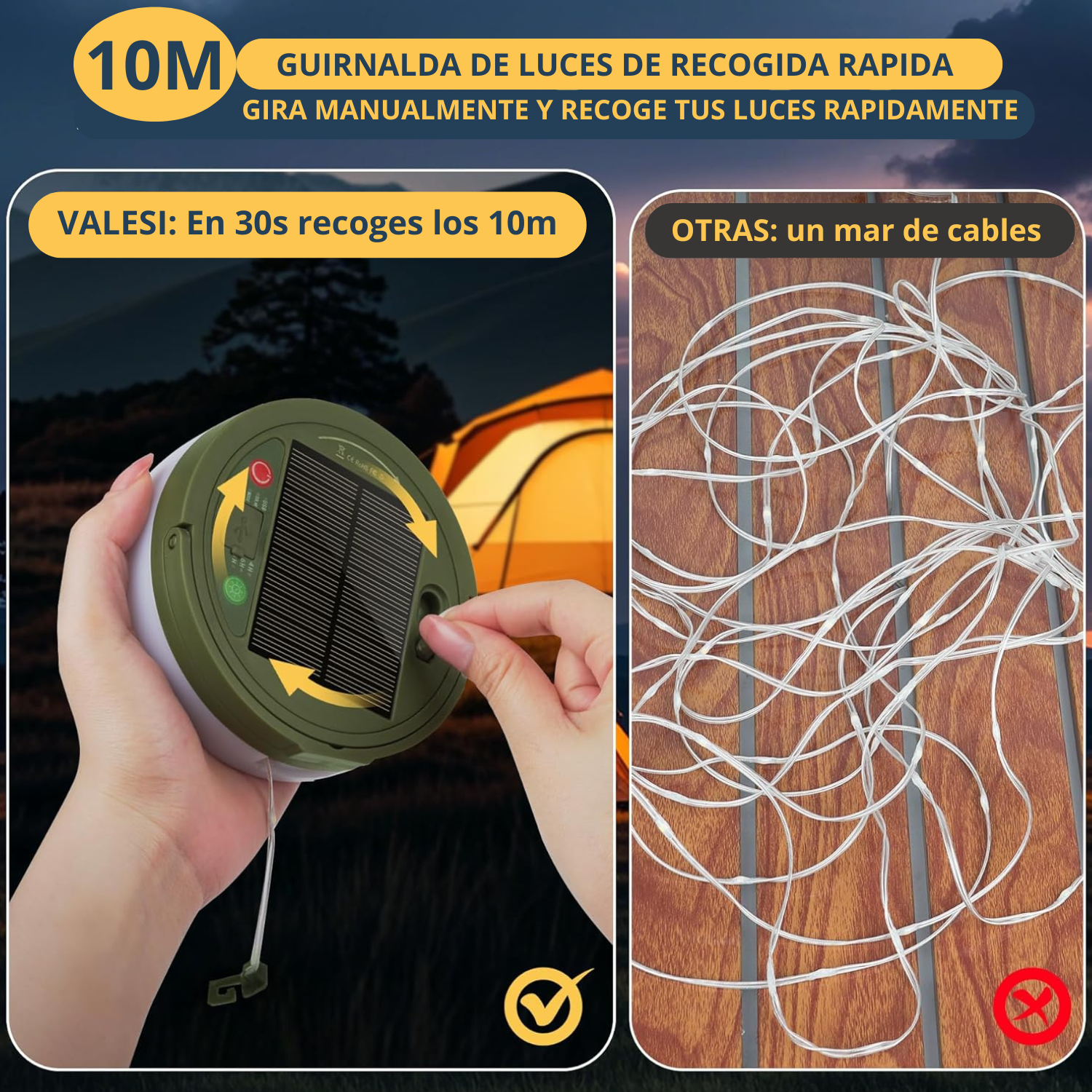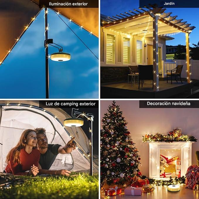 está diseñada para acompañarte en cualquier ocasión. En el hogar se integra perfectamente en la decoración navideña, aportando un brillo cálido y festivo. En terrazas y balcones crea ambientes acogedores para disfrutar de tus noches al aire libre sin consumo eléctrico. Durante acampadas se convierte en una compañera indispensable, fácil de llevar y siempre lista gracias a su carga solar. Y cuando cae la noche, su iluminación suave pero potente te permite ver con claridad, ya sea para caminar, cocinar o simplemente relajarte. Una solución práctica, estética y ecológica que se adapta a todos tus planes.
