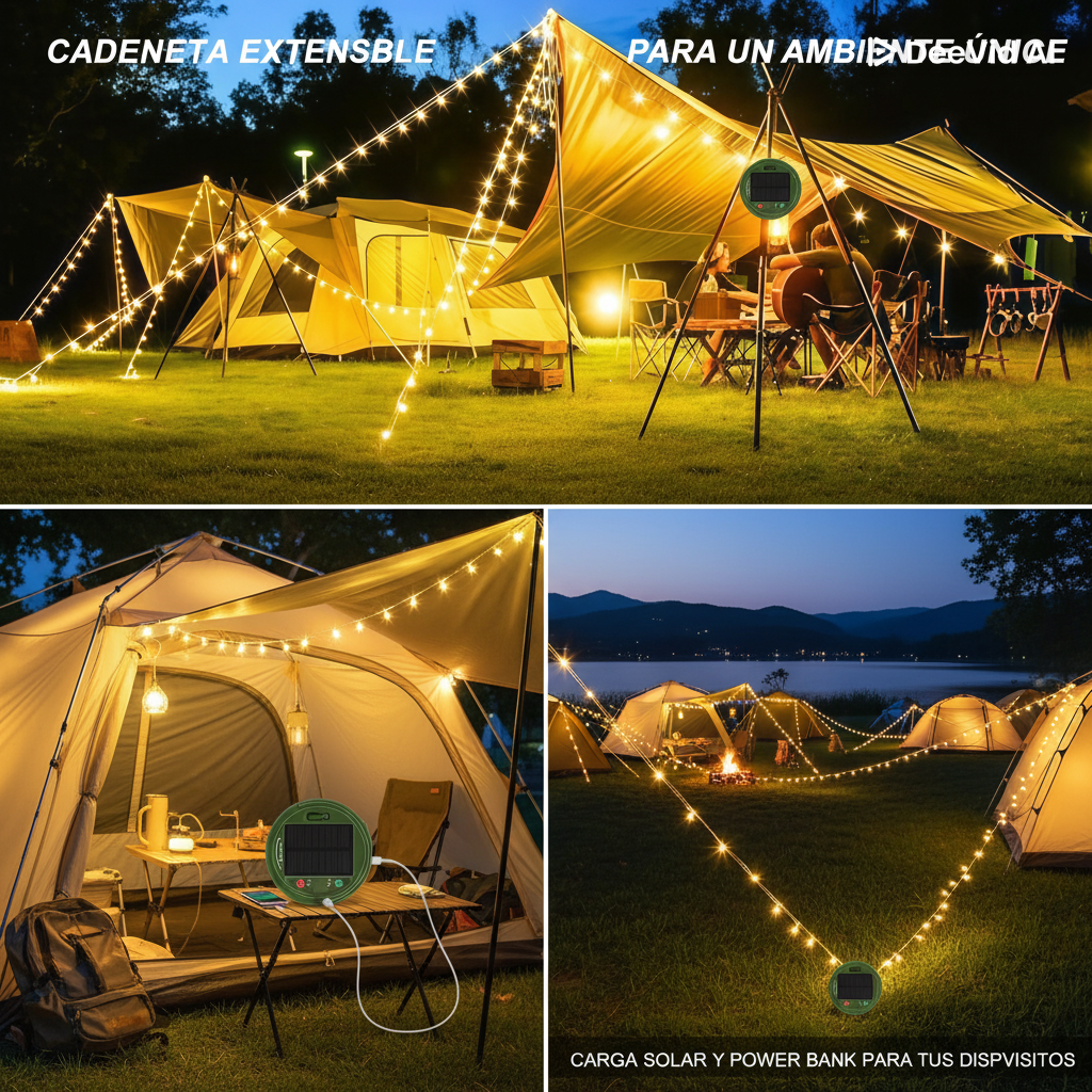 Con su diseño impermeable IP65 y gancho incluido, podrás colgarlas fácilmente en tu tienda, caravana, terraza o patio. Ajusta el brillo según el ambiente —ya sea una noche romántica bajo las estrellas o una divertida reunión con amigos— y disfruta de una luz cálida y envolvente que acompañará cada momento.